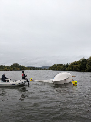 Gleichzeitig konnten die Bootsführer nochmal wiederholen, welche Arten es zum Schleppen eines Segelbootes gibt, und wie man es auch vom Boot aus wieder aufrichten bzw. freischleppen kann. Aufgrund der Wassertiefe bestand bei der praktischen Übung regelmäßig das Problem, dass die Boote nicht durchkenterten, sondern mit dem Mast auf dem Grund aufsaßen bzw. feststeckten.